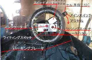さっそくマシンをおろして、タイヤ、バッテリーをつけ、エンジンオイルを入れました。2号車はシート合わせができてないので、調整して車検へ。3号車はサイドブレーキをロックしてリヤタイヤを縛り付けて長時間走ってきたので、ワイヤーを挟んでいた部分のかみ合わせに、がたが出てしまいロックできなくなってしまった。何度も調整してやっと車検が通る。