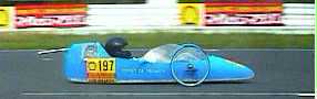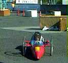 原因は色々考えられますが、一番の理由はギヤ比が低すぎた(2号車1:10、3号車9:100)事だと思います。昨年84kgのドライバーでもダンロップコーナーを楽々登っていた事でも予想はしていたのですが…。2番目は、エンジンルームがコンパクトなため(3号車はヘルメットとリヤタイヤの間が1cm位しかあいてない)熱がこもって蒸発したんではないか、と思います。それに、スタート前の燃料のトップアップするためにキャップを取った時タンクがかなり暖かでした。この燃料の膨張もばかにならないと思います。試しに350ccの清涼飲料水のびんで、ガソリンを40℃から25℃に冷やした所、5ccも減りました。タンクを外す時もホースにたくさん気泡があったのでキャブからかなり蒸発してると思われます。