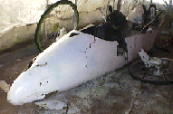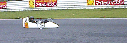 9/9 地元での最後の練習のつもりがフェンスに激突。前輪を取り付けてあった3mm厚のアルミにステンレスを巻いたパイプが引きちぎれ、アルミ・FRP混成モノコックのフロントセクションが大破、再生不能と思われました。91年参加以来放置してあった2号車(今回のは3号車)を整備して使おうと3号車のエンジンパーツを移植し始めましたがドライバーの体格が合わず、しかも運転操作がまったく違うので無理があると判断。3号車を再生できなければ棄権もやむをえないと覚悟を決める。重量増にも目をつぶりアルミにFRPを貼り付けテストもせずに組み付ける